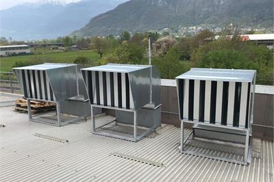 The material from which the silencers are made is not hygroscopic, does not encourage the development and formation of spores or bacteria, and is not subject to corrosion by atmospheric agents. The baffles are inserted in a structure made of galvanised sheet steel, of adequate thickness, with appropriate reinforcements that guarantee perfect solidity to allow use even in the most severe conditions. Flanges are provided at the ends for connection to the ducting. The baffle silencers are available in many standard sizes, on request they are constructed with customer-specific dimensions and characteristics.